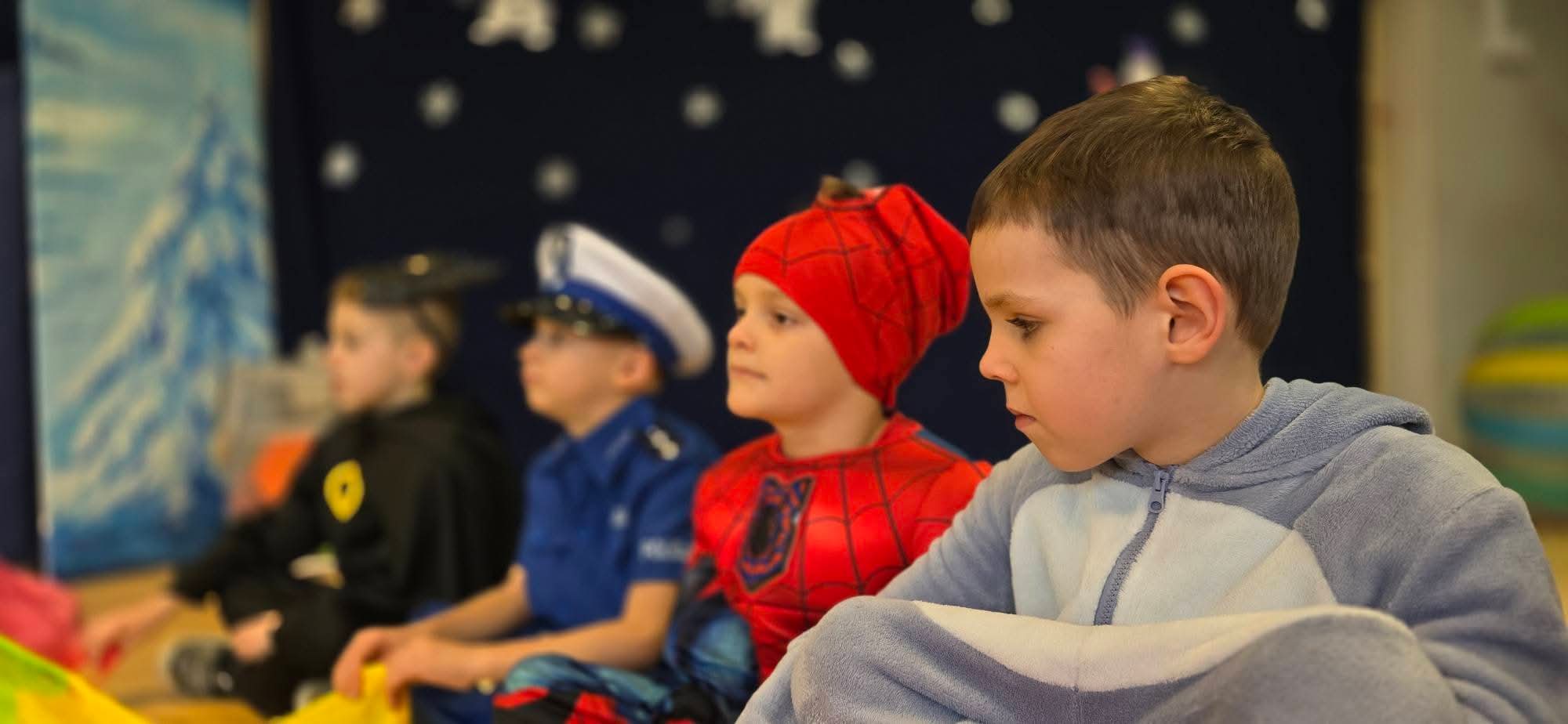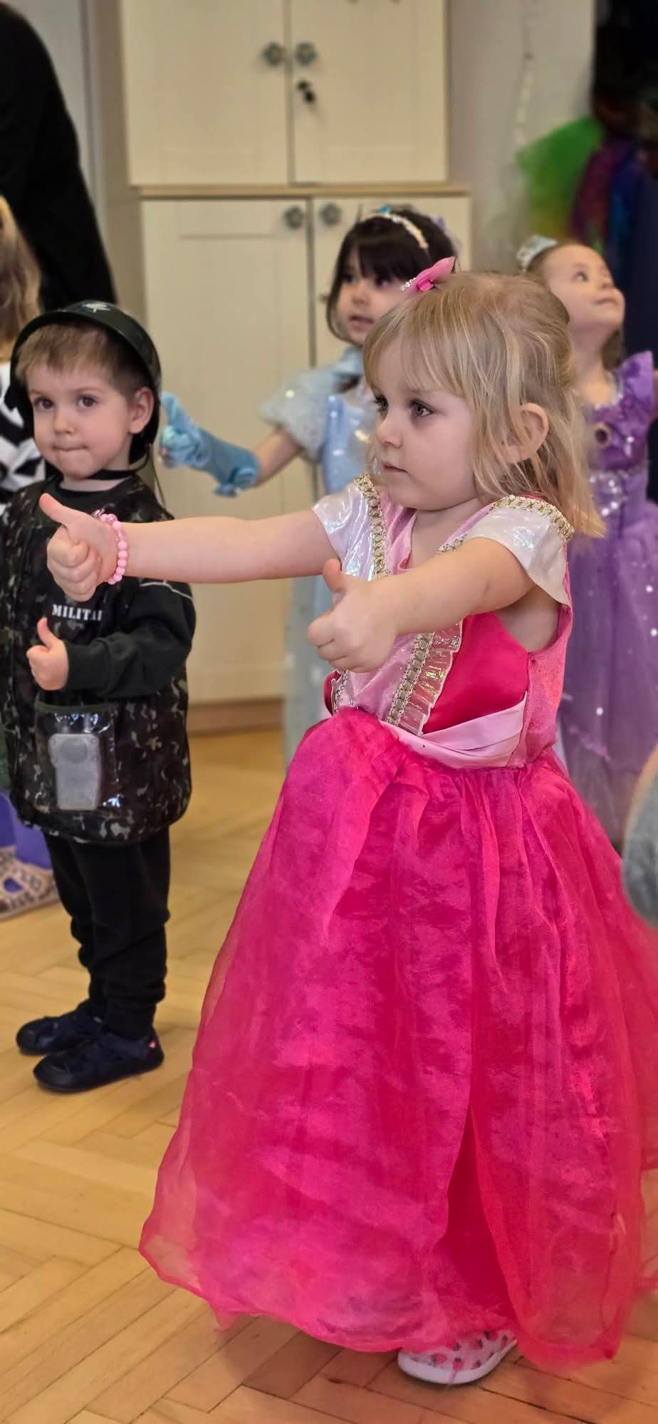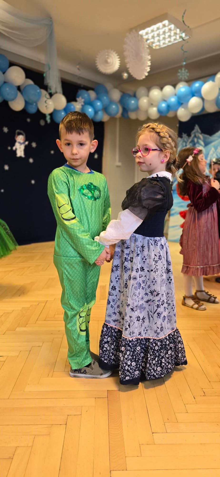 Dziś w naszym przedszkolu odbył się Bal Karnawałowy. Już od samego rana sala wypełniła się barwnymi postaciami – pojawiły się księżniczki, królewny, strażacy, policjanci, superbohaterowie, zwierzątka oraz wróżki. Kolorowe stroje, radosna muzyka sprawiły, że sala przez cały czas tętniła życiem.