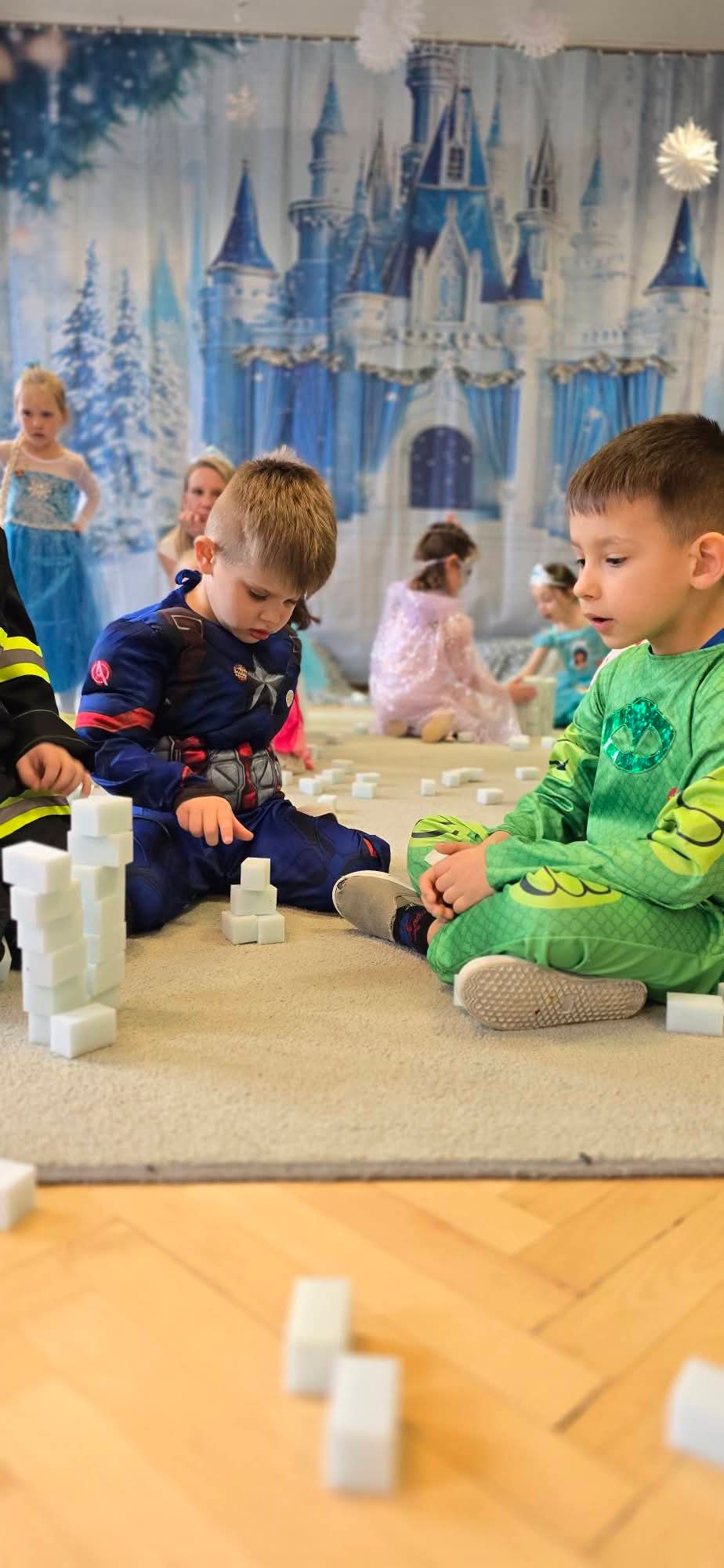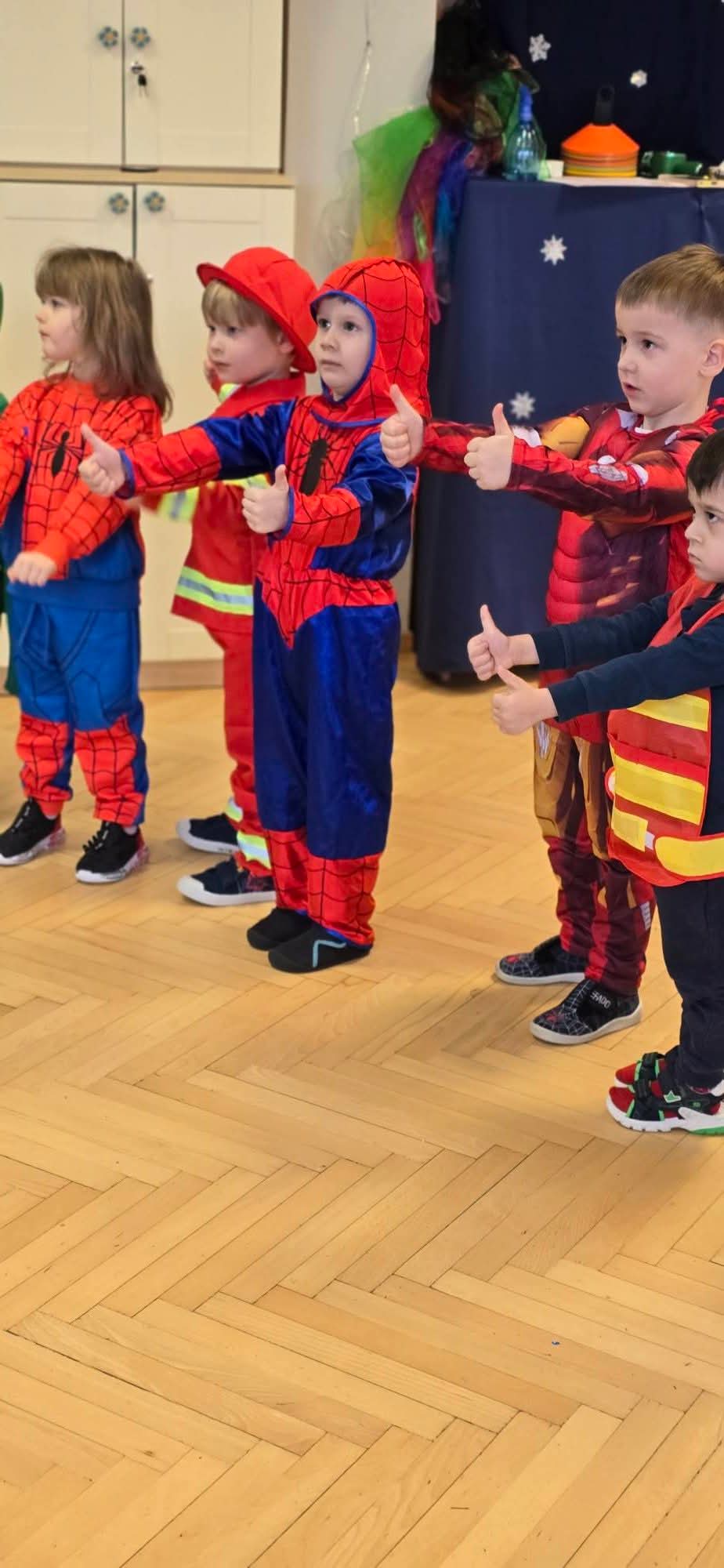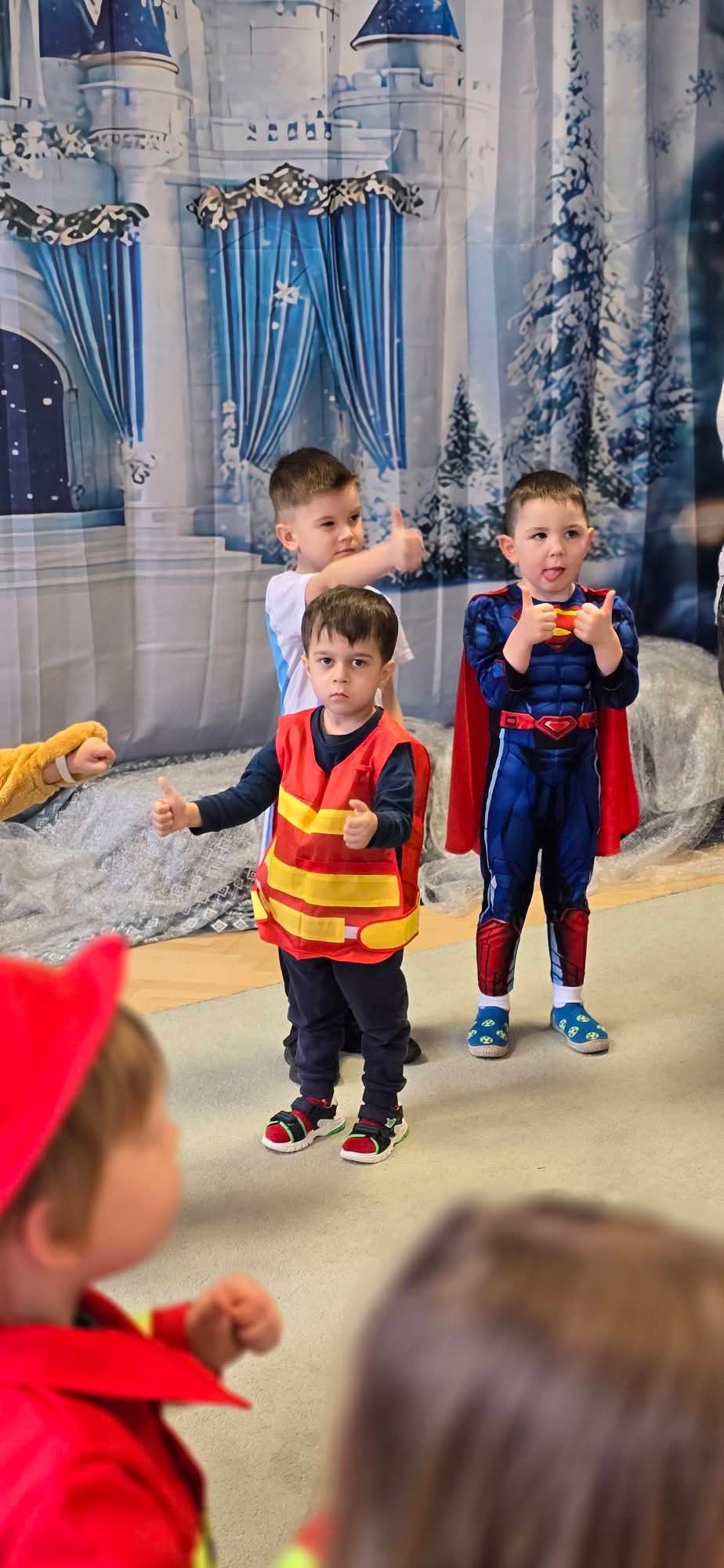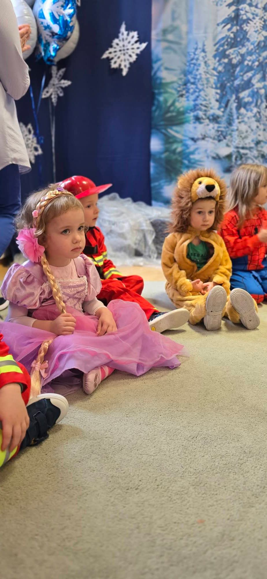 Dziś w naszym przedszkolu odbył się Bal Karnawałowy. Już od samego rana sala wypełniła się barwnymi postaciami – pojawiły się księżniczki, królewny, strażacy, policjanci, superbohaterowie, zwierzątka oraz wróżki. Kolorowe stroje, radosna muzyka sprawiły, że sala przez cały czas tętniła życiem.
