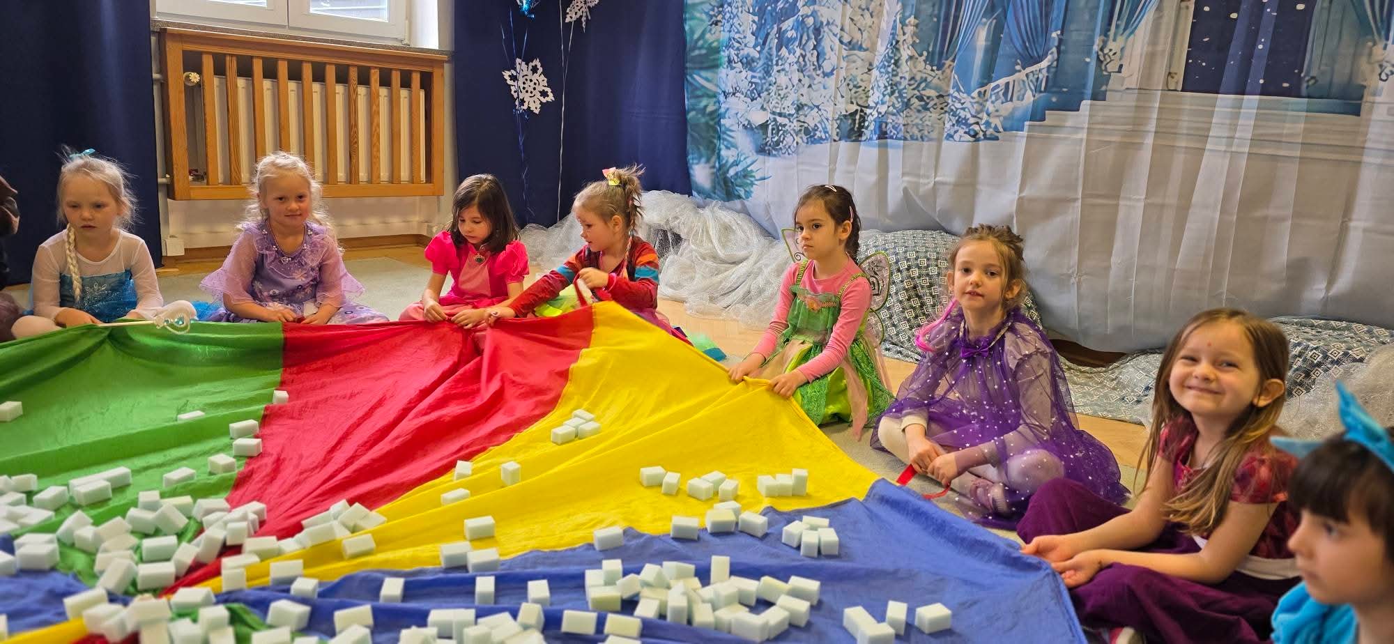 Podczas balu nie zabrakło tańców oraz różnorodnych zabaw ruchowych. Jedną z największych atrakcji okazało się „zbieranie kostek lodu” oraz doświadczenie z płynem, który odmrażał „zamrożone” dzieci". Zabawy te dostarczyły dzieciom wiele emocji i  mnóstwo uśmiechów.