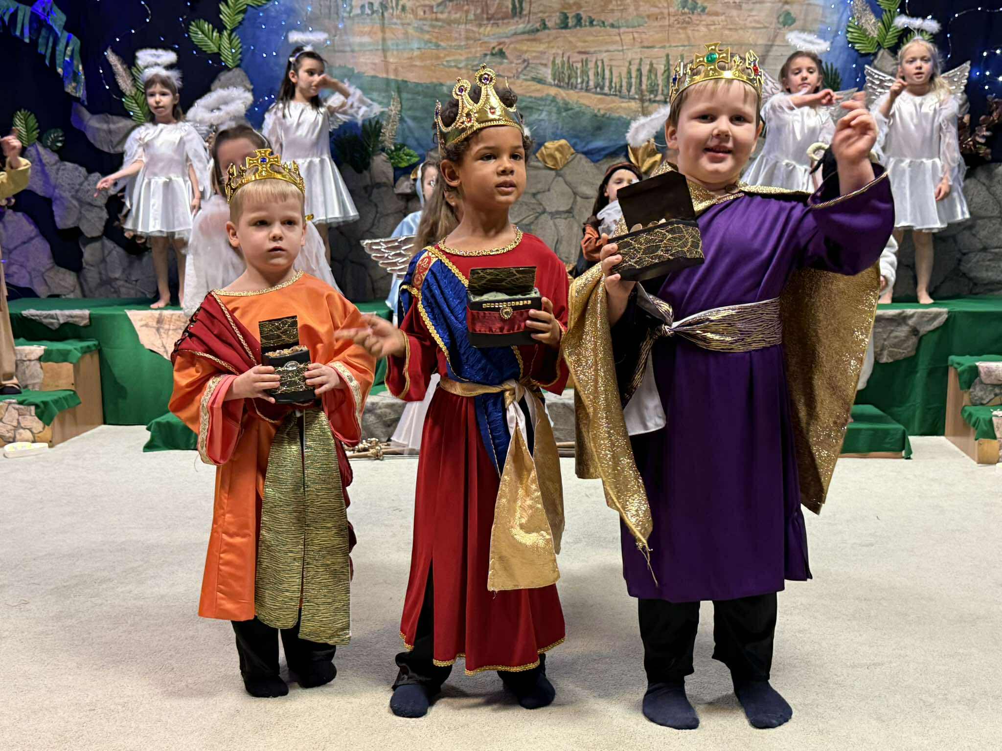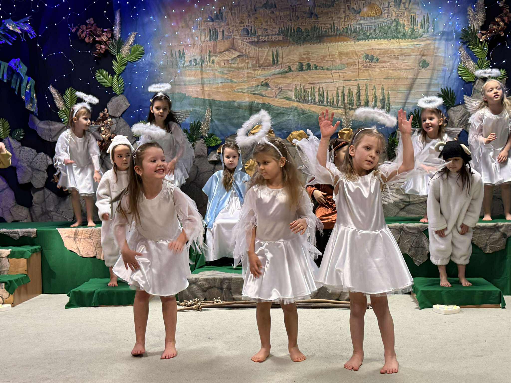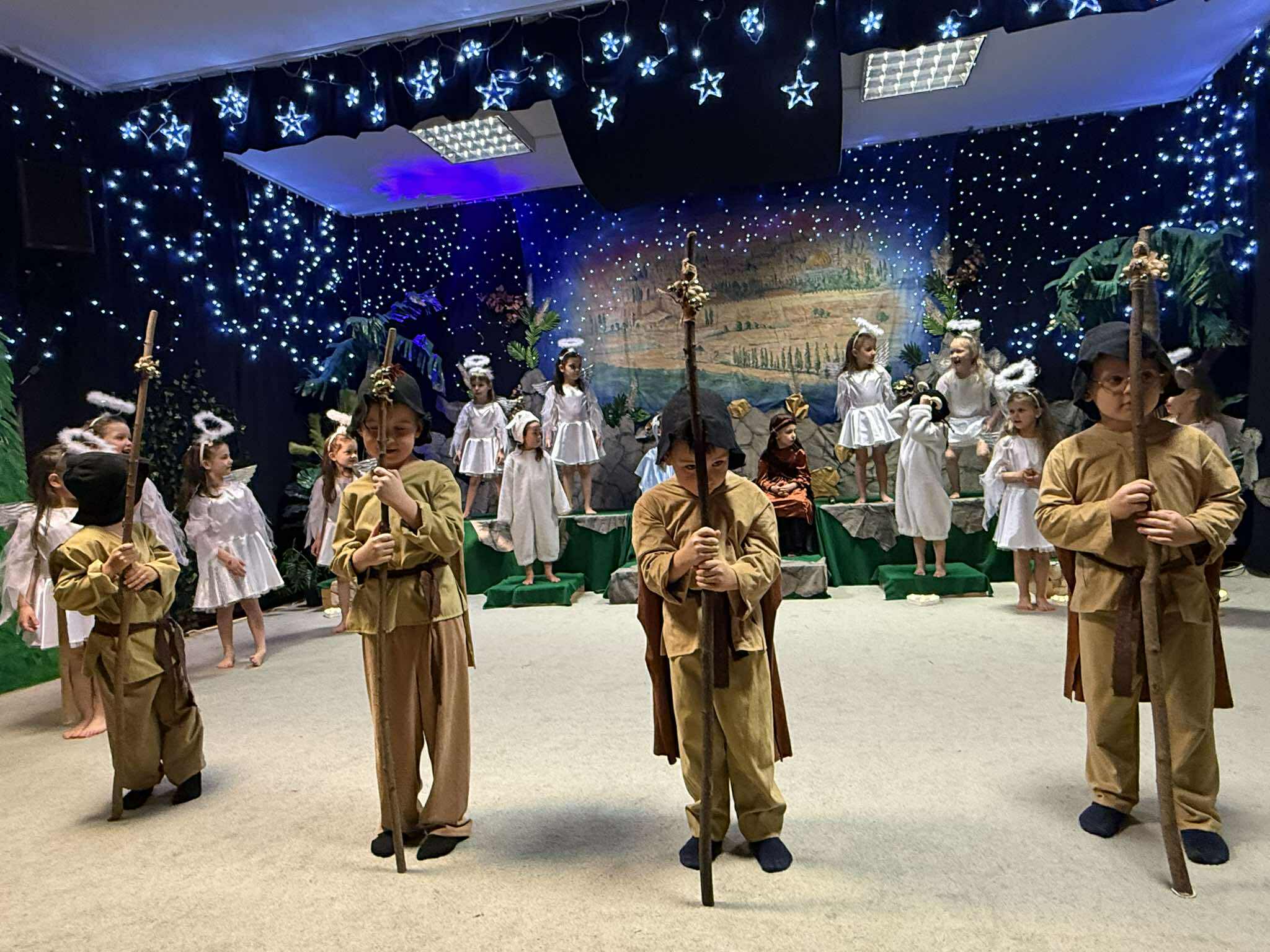 „Maleńka Miłość” ukazała historię Bożego Narodzenia w sposób wyjątkowo naturalny i szczery. Dzieci, z ogromnym zaangażowaniem i odwagą, wcieliły się w swoje role, a każde wypowiedziane słowo, każdy gest i każda piosenka płynęły prosto z ich serc. To właśnie ta dziecięca prostota sprawiła, że przedstawienie nabrało niezwykłej mocy i pozwoliło widzom na nowo odkryć sens świątecznej tajemnicy.