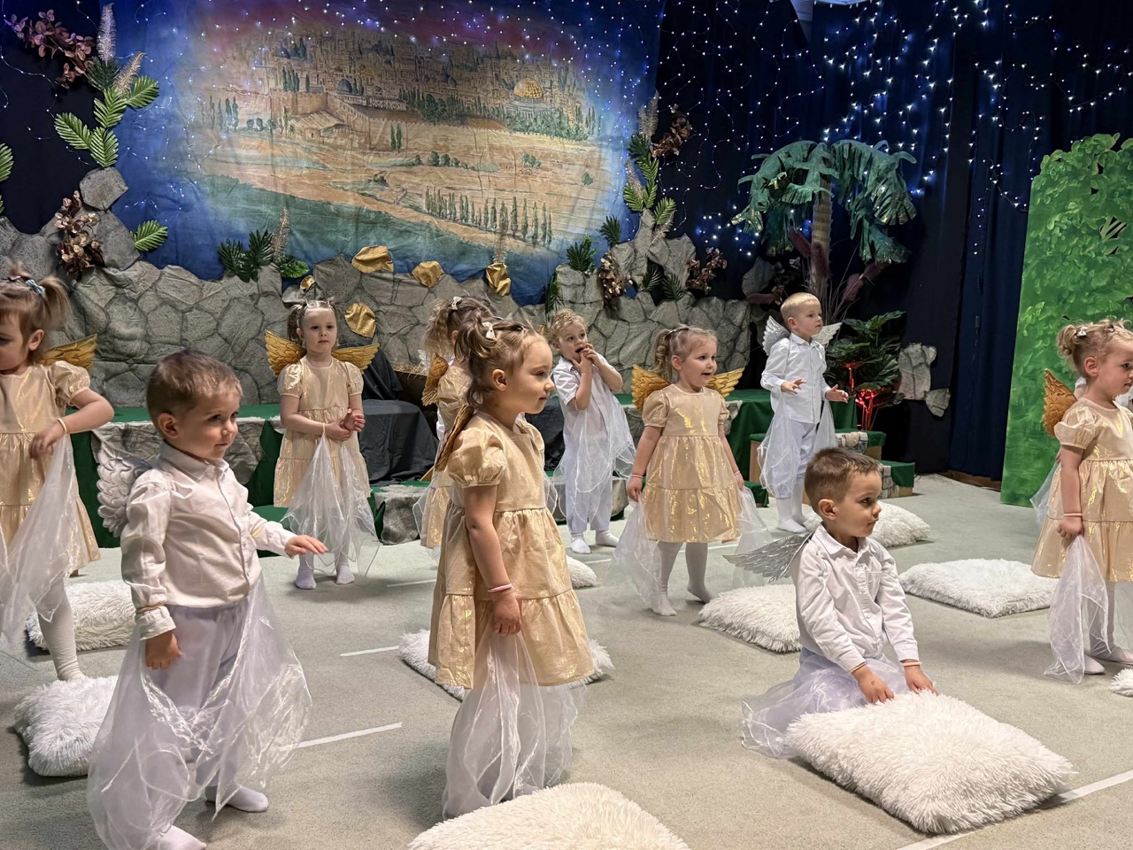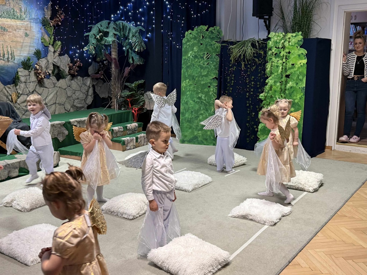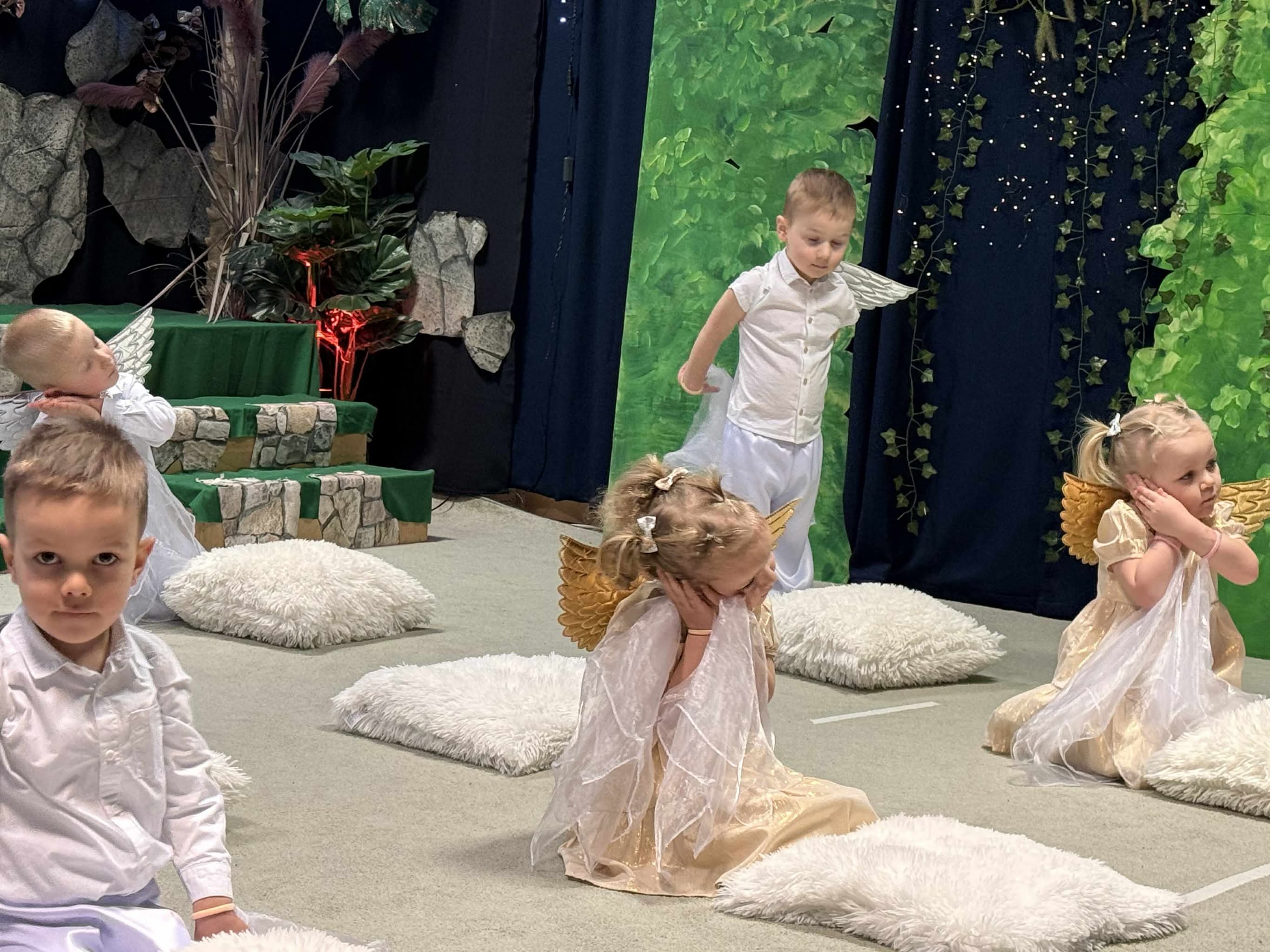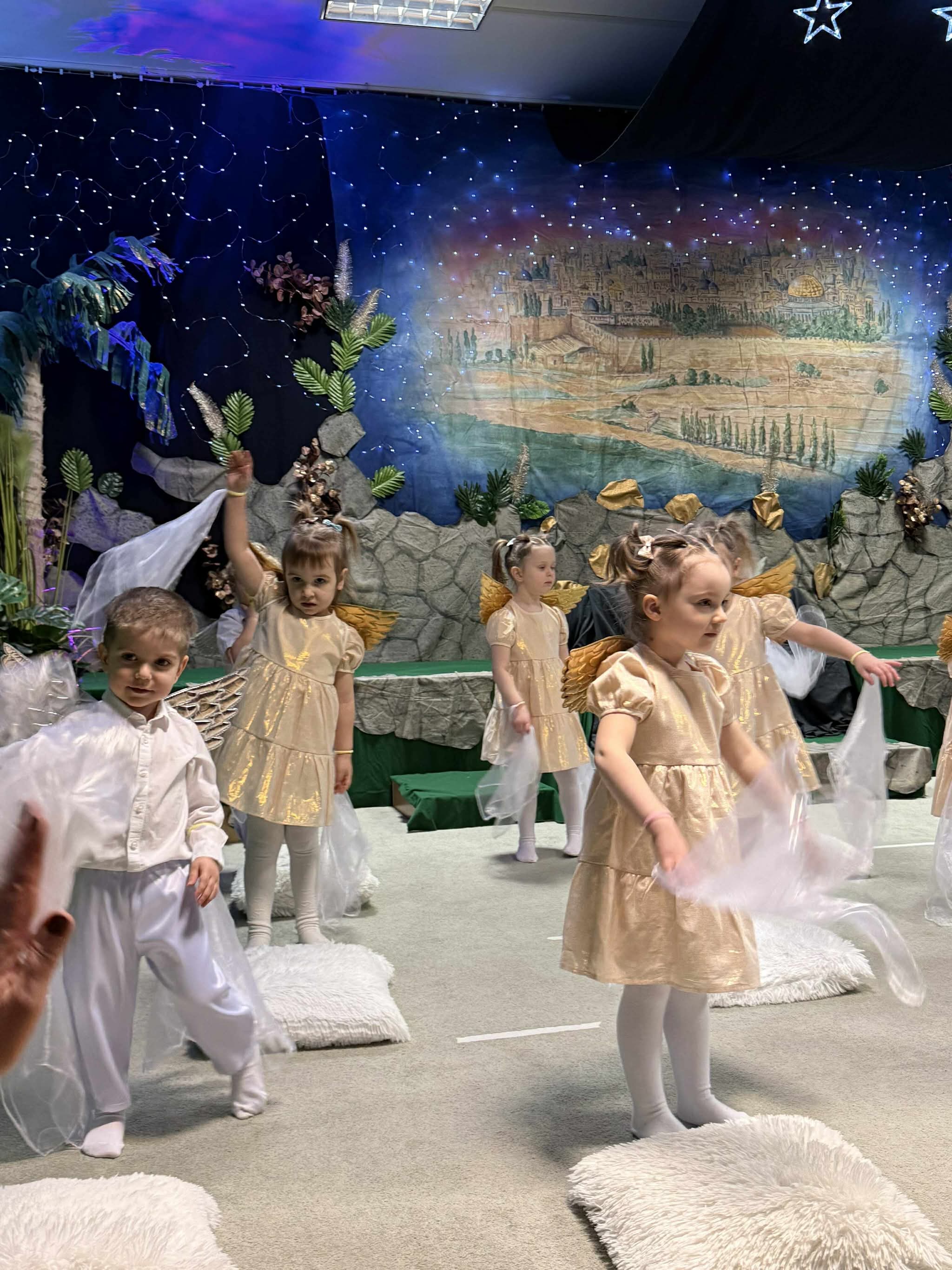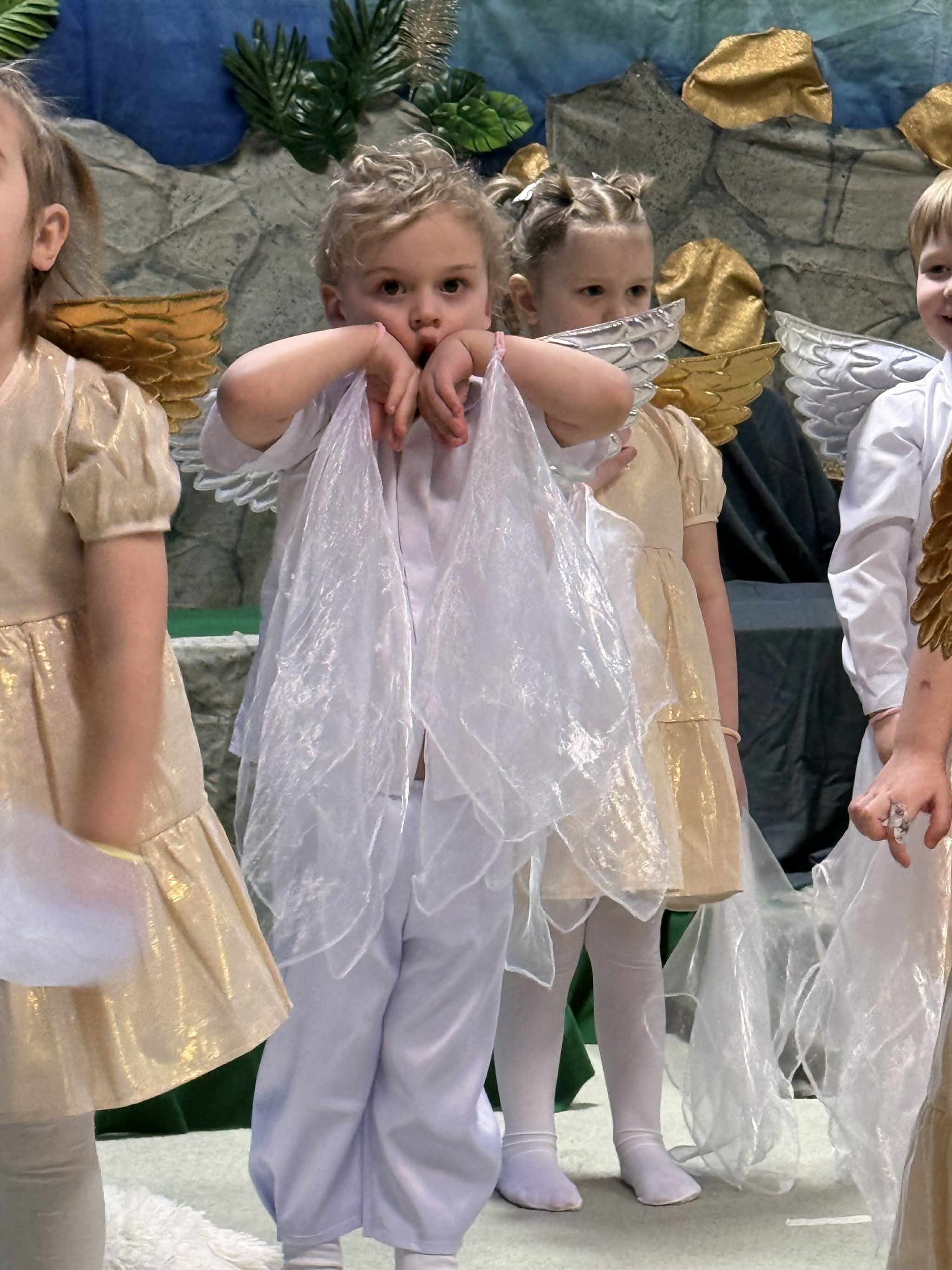 W czas Bożego Narodzenia, najmłodsza grupa Krasnali z naszego przedszkola przygotowała wyjątkowe jasełkowe przedstawienie pod tytułem „W Aniołkowie”. Trzyletnie maluszki z ogromnym zaangażowaniem i dziecięcą szczerością opowiedziały historię narodzin Pana Jezusa, wprowadzając wszystkich zgromadzonych w świąteczny nastrój pełen radości i ciepła.
