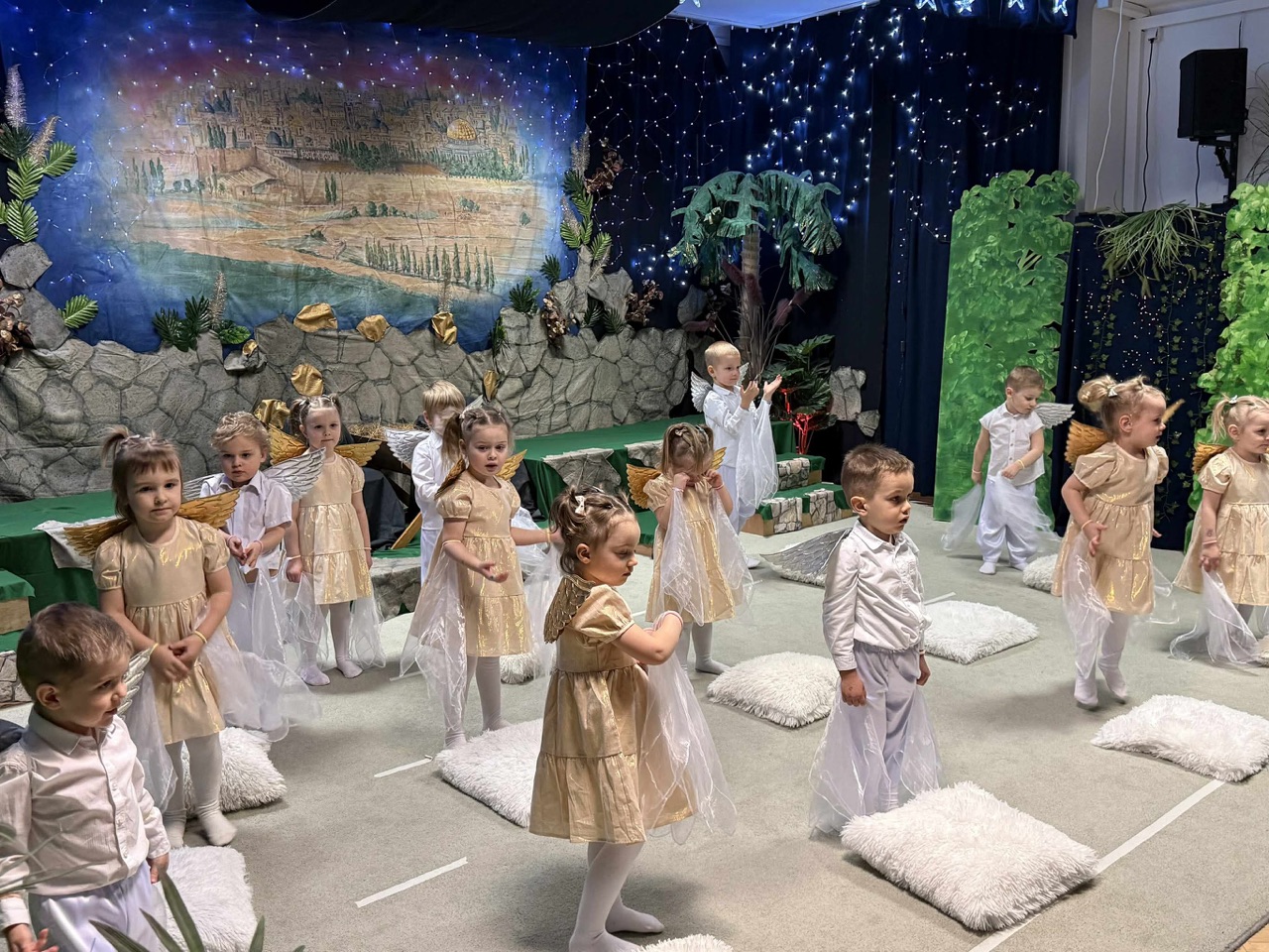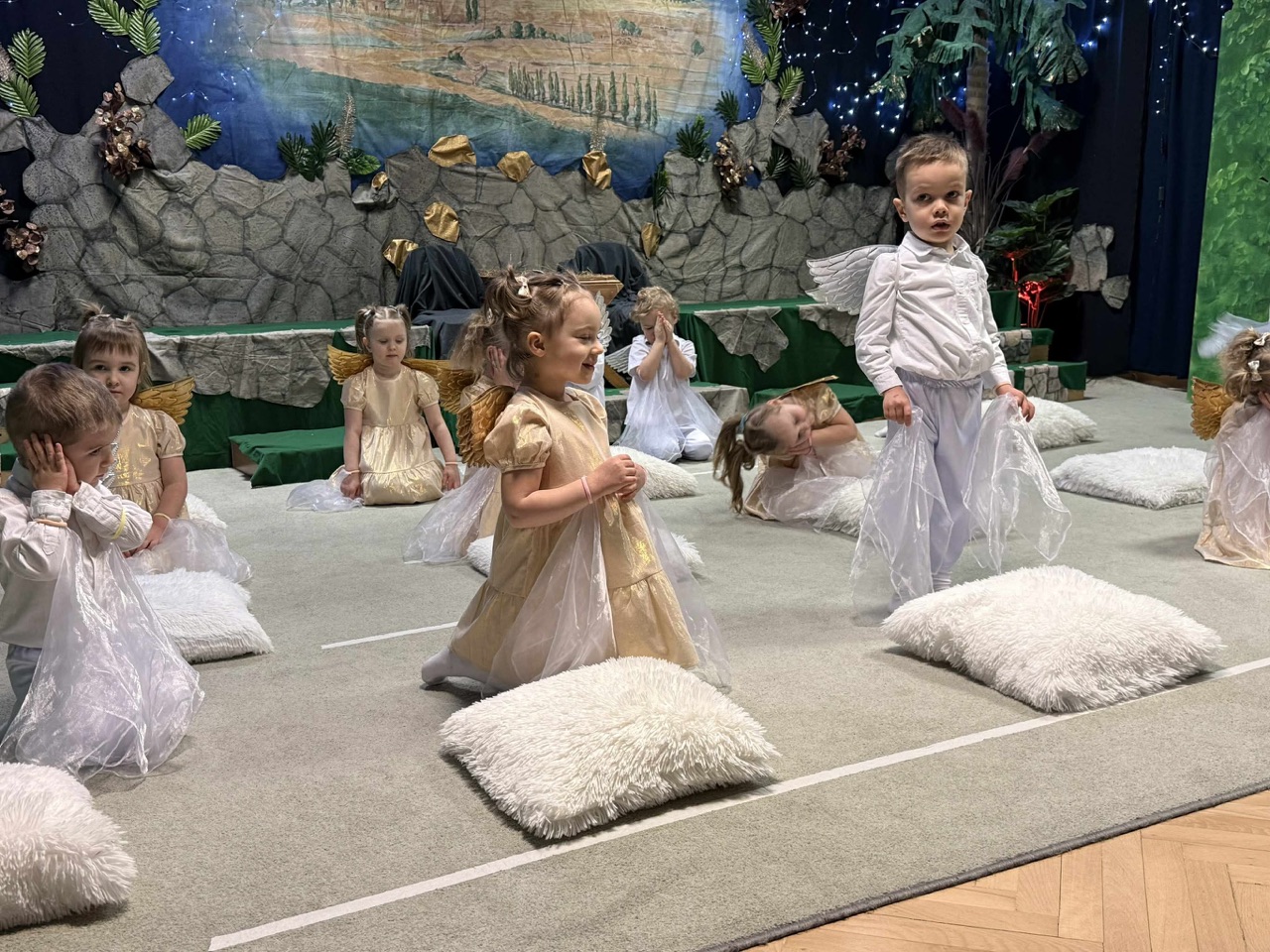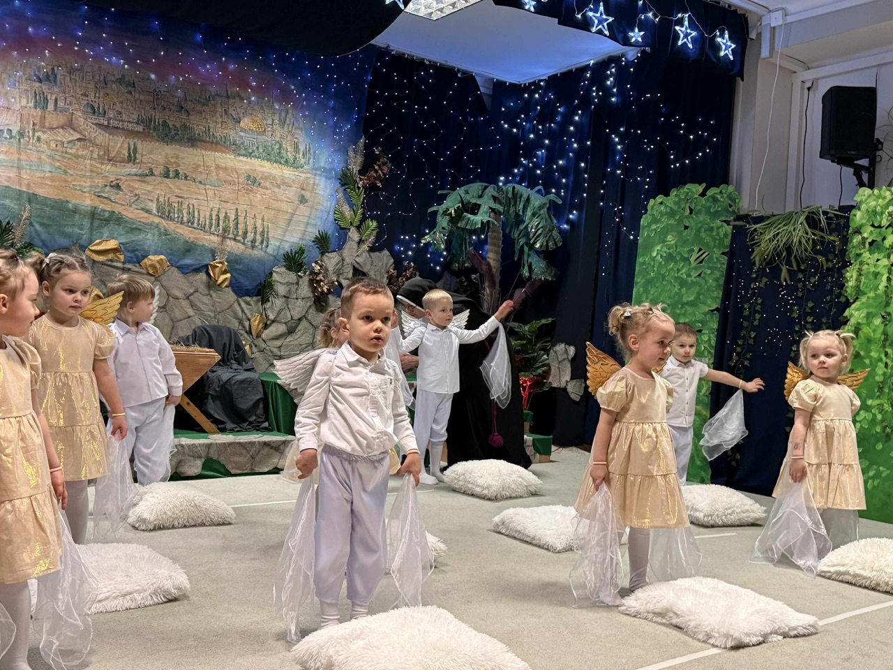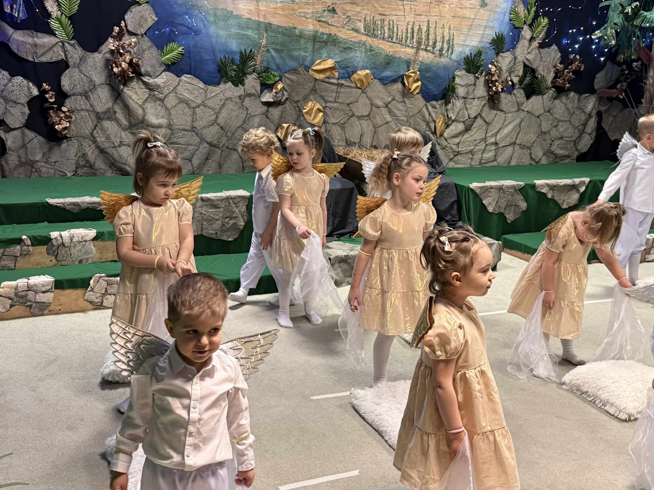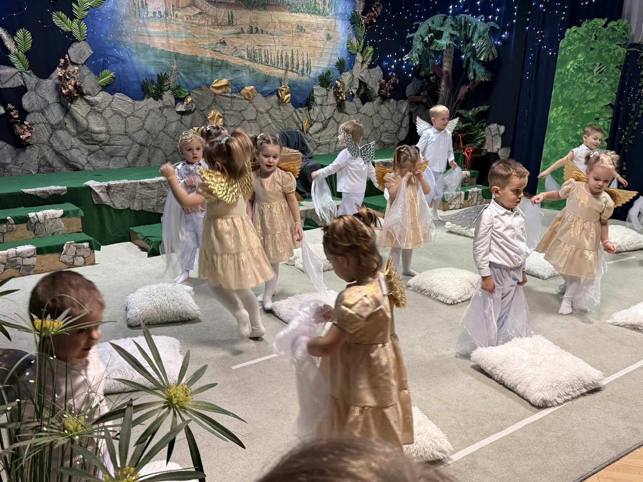 W czas Bożego Narodzenia, najmłodsza grupa Krasnali z naszego przedszkola przygotowała wyjątkowe jasełkowe przedstawienie pod tytułem „W Aniołkowie”. Trzyletnie maluszki z ogromnym zaangażowaniem i dziecięcą szczerością opowiedziały historię narodzin Pana Jezusa, wprowadzając wszystkich zgromadzonych w świąteczny nastrój pełen radości i ciepła.