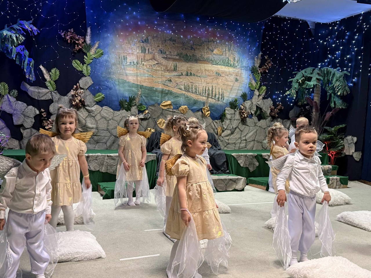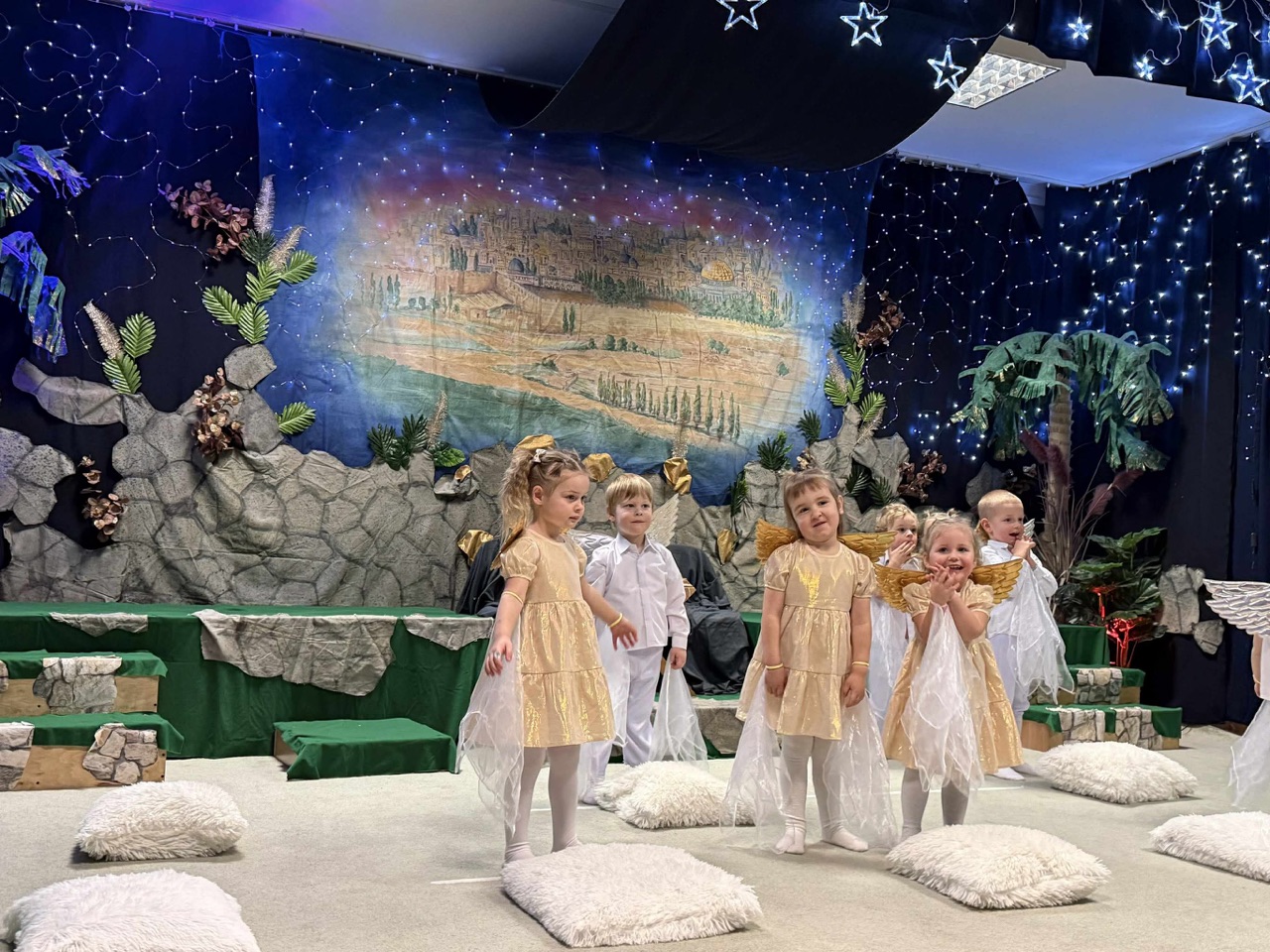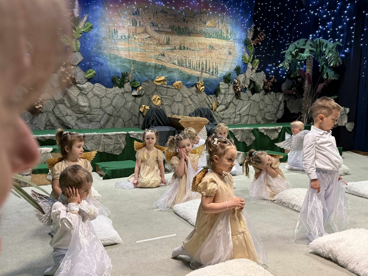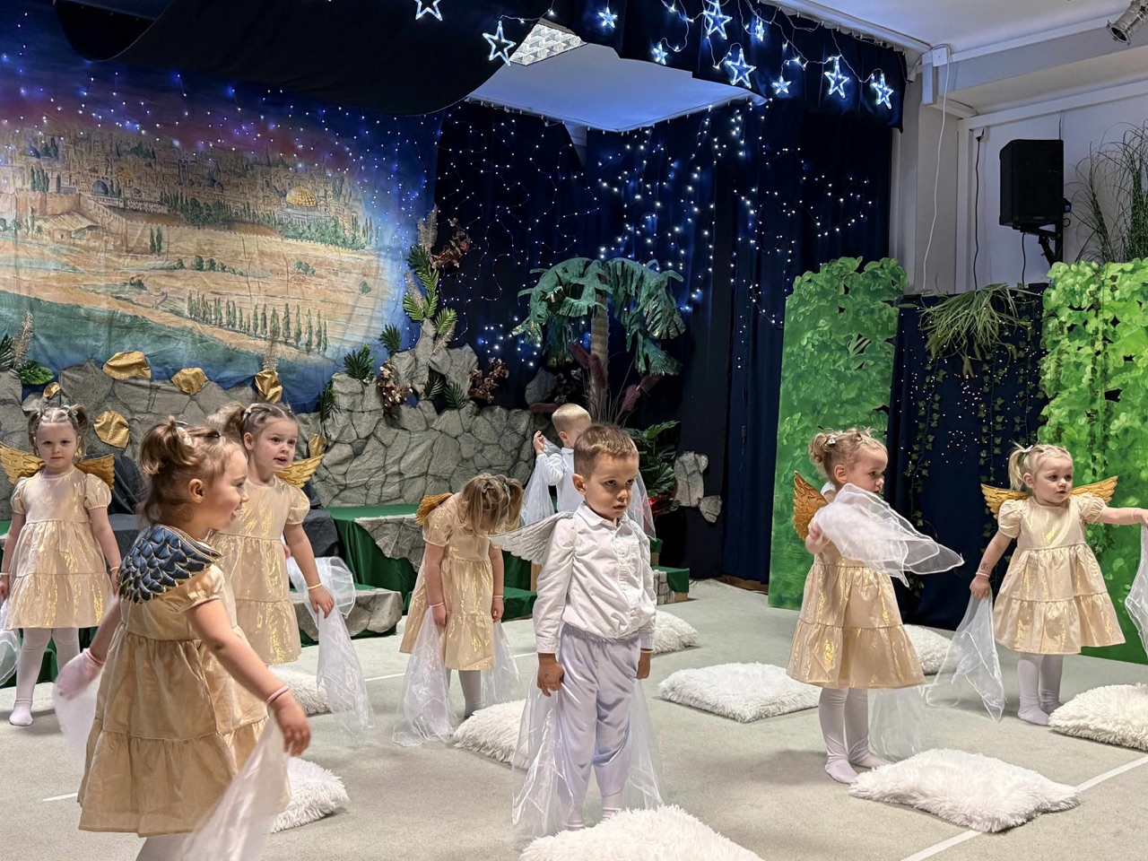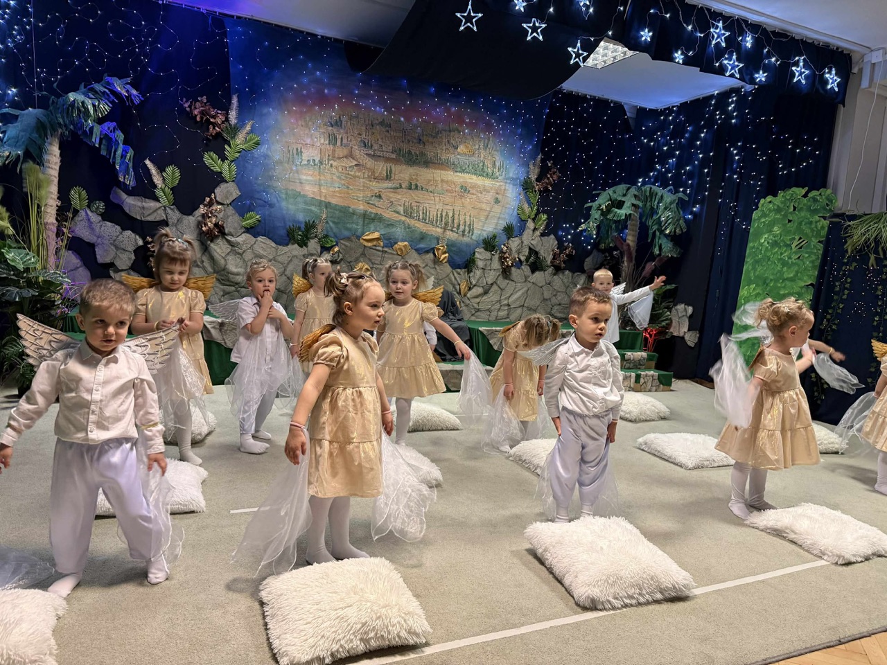 W czas Bożego Narodzenia, najmłodsza grupa Krasnali z naszego przedszkola przygotowała wyjątkowe jasełkowe przedstawienie pod tytułem „W Aniołkowie”. Trzyletnie maluszki z ogromnym zaangażowaniem i dziecięcą szczerością opowiedziały historię narodzin Pana Jezusa, wprowadzając wszystkich zgromadzonych w świąteczny nastrój pełen radości i ciepła.