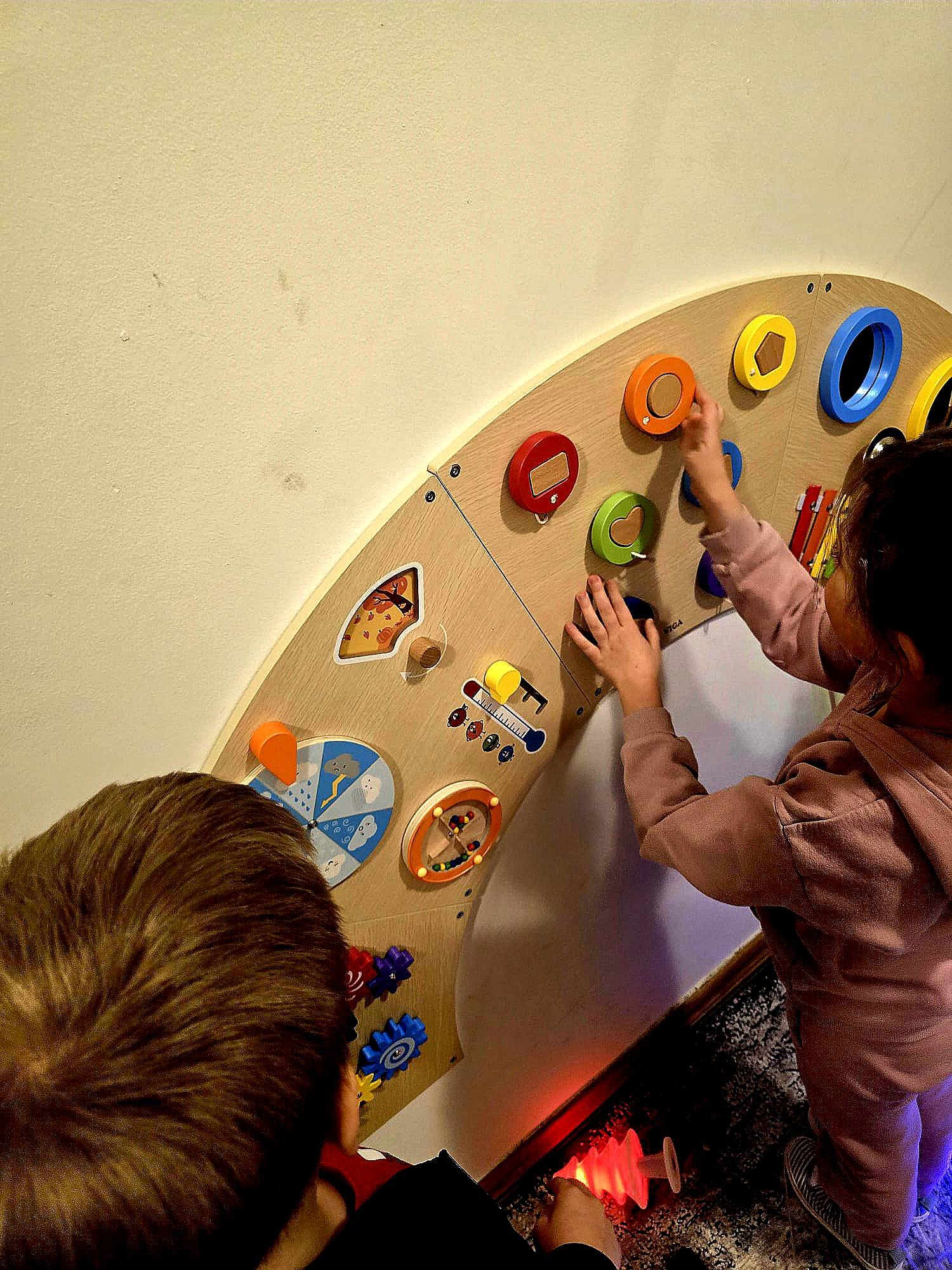 Wspiera rozwój zmysłów: wzroku, słuchu i dotyku – poprzez różnorodne bodźce sensoryczne dzieci poznają świat i rozwijają percepcję.