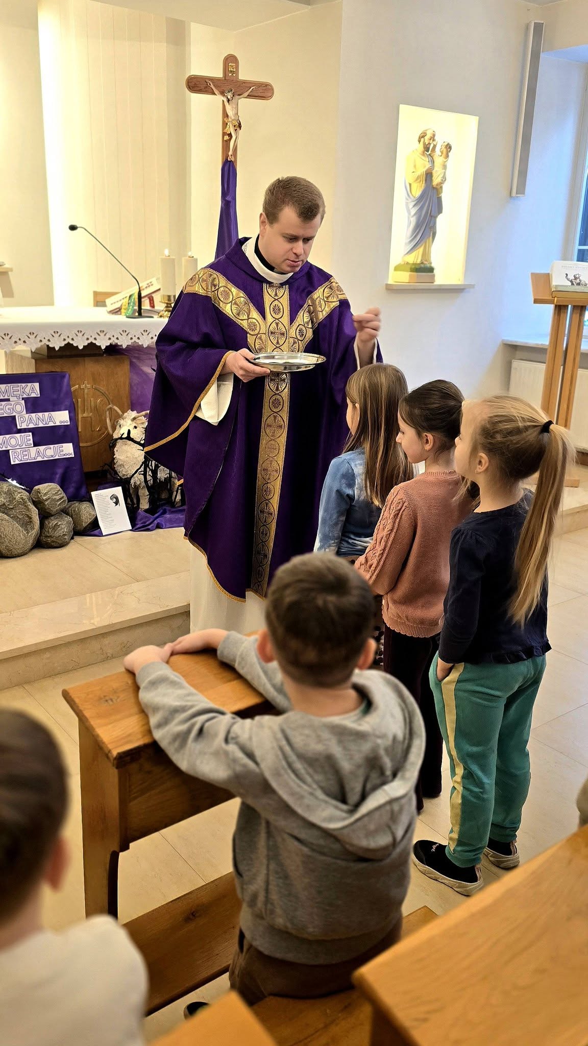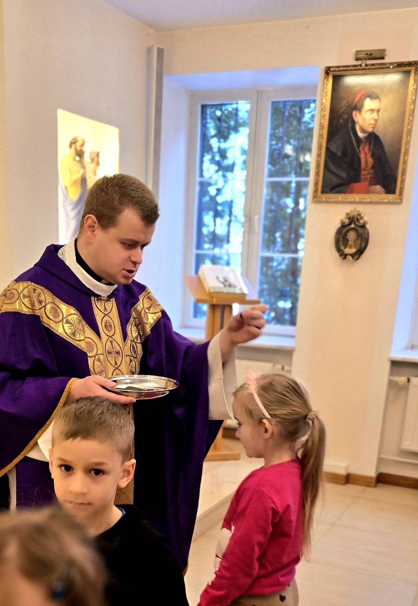 Dzieci uczestniczyły w uroczystej Mszy Świętej w naszej kaplicy, podczas której kapłan posypał ich głowy popiołem na znak rozpoczęcia Wielkiego Postu. Popiół przypomina o przemijaniu, pokorze i potrzebie nawrócenia.