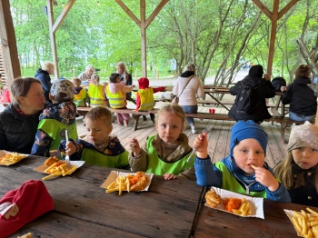 Atrakcje parku zachwycały co i rusz: najpierw przejazd kolejką w wagonikach ze skrzyni, następnie: strachowisko, brzozowy labirynt, warsztaty edukacyjne, kretowisko, małpi gaj, karuzela, hamaki, tor przeszkód, zabawy arbuzowymi piłkami na ,,gorących piaskach” i wiele innych atrakcji. W tzw. międzyczasie obiad, a chwile przerwy poobiedniej relaks na hamakach. Atrakcji było tak dużo, że zabrakło czasu na skorzystanie ze wszystkich.